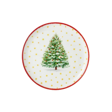 Piatto Panettone Ø 27 cm in Porcellana Decoro Albero di Natale con Doni