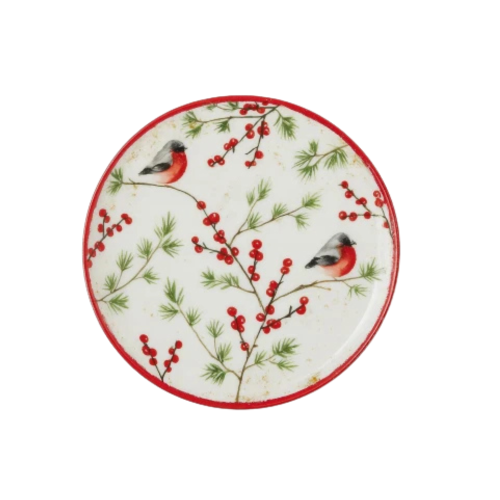 Piatto Panettone Ø 27 cm in Porcellana Decoro Vischio Natalizio