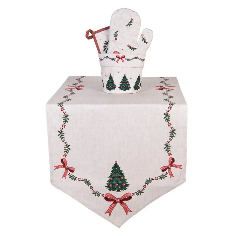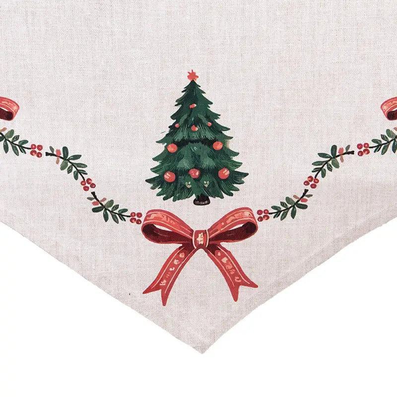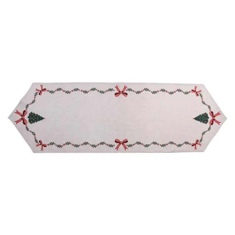 Definisci lo stile della tua tavola natalizia con questo elegante runner in cotone beige, parte della coordinata collezione natalizia con alberi e ghirlande.