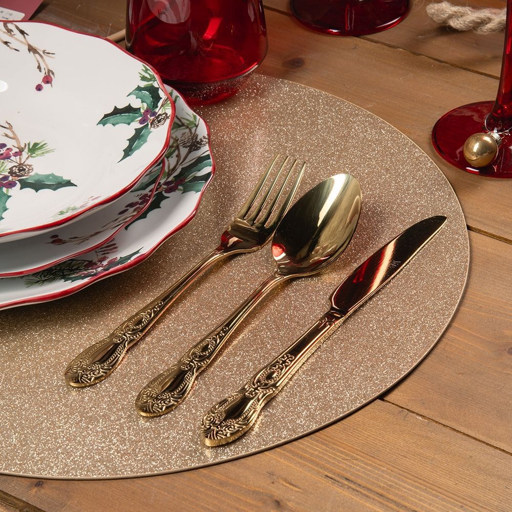 Servizio 24 Posate Colore Oro Lucido in Acciaio Inox Wonderland - Villa D'Este