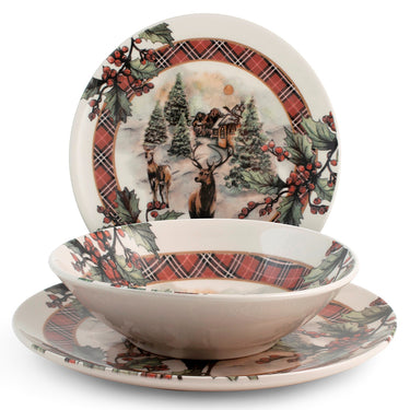 Set da 18 Piatti in Porcellana Stoneware Motivo Natalizio - Pengo
