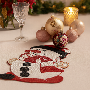Tovaglietta Natalizia Snowman 35x25 cm in Cotone e Perline Multicolor - Viron