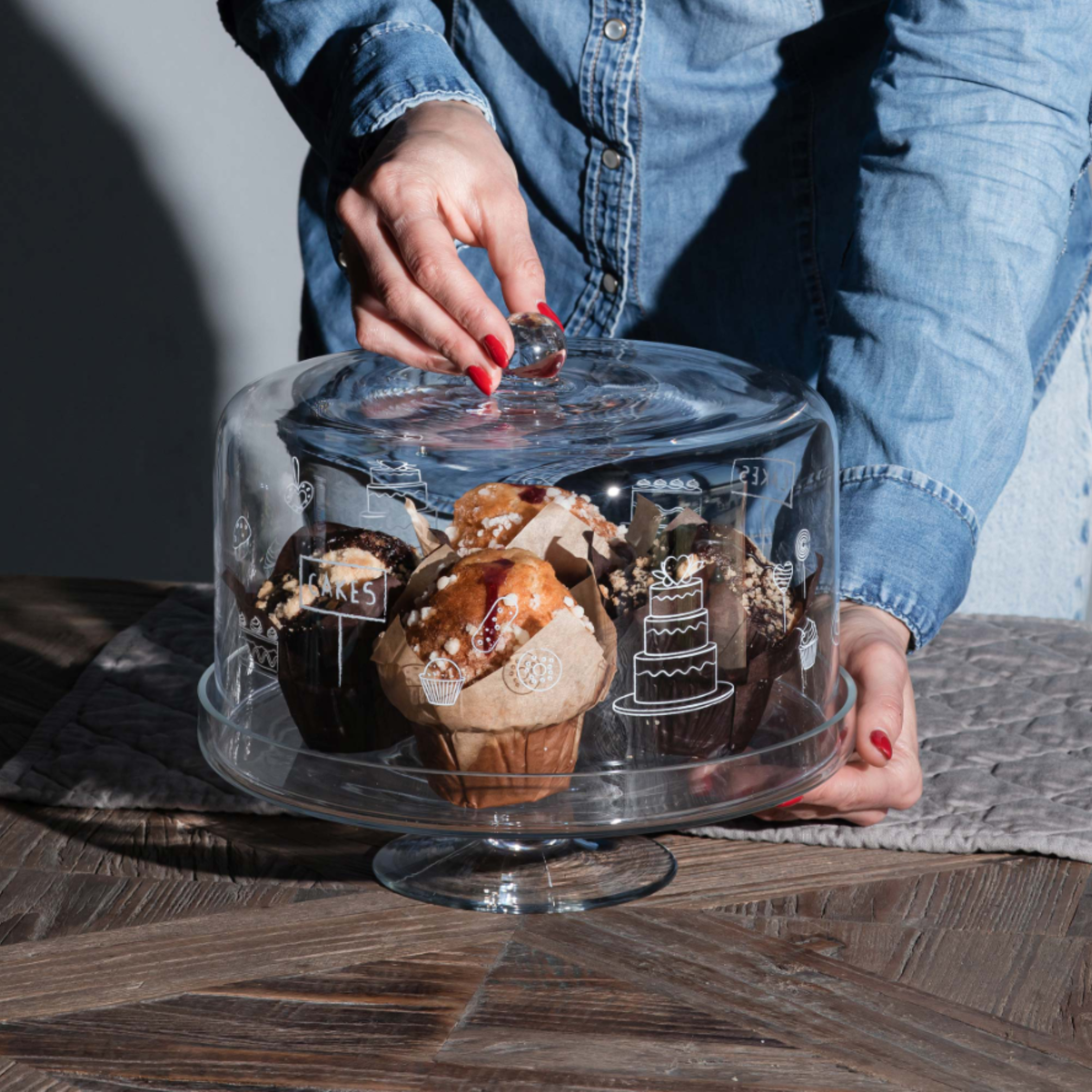 La campana in vetro “Cakes” è pensata per proteggere e conservare dolci, torte, muffin e biscotti, mantenendone freschezza e fragranza. La trasparenza del vetro consente di valorizzare il contenuto, rendendola adatta sia all’uso quotidiano che alla presentazione in tavola.