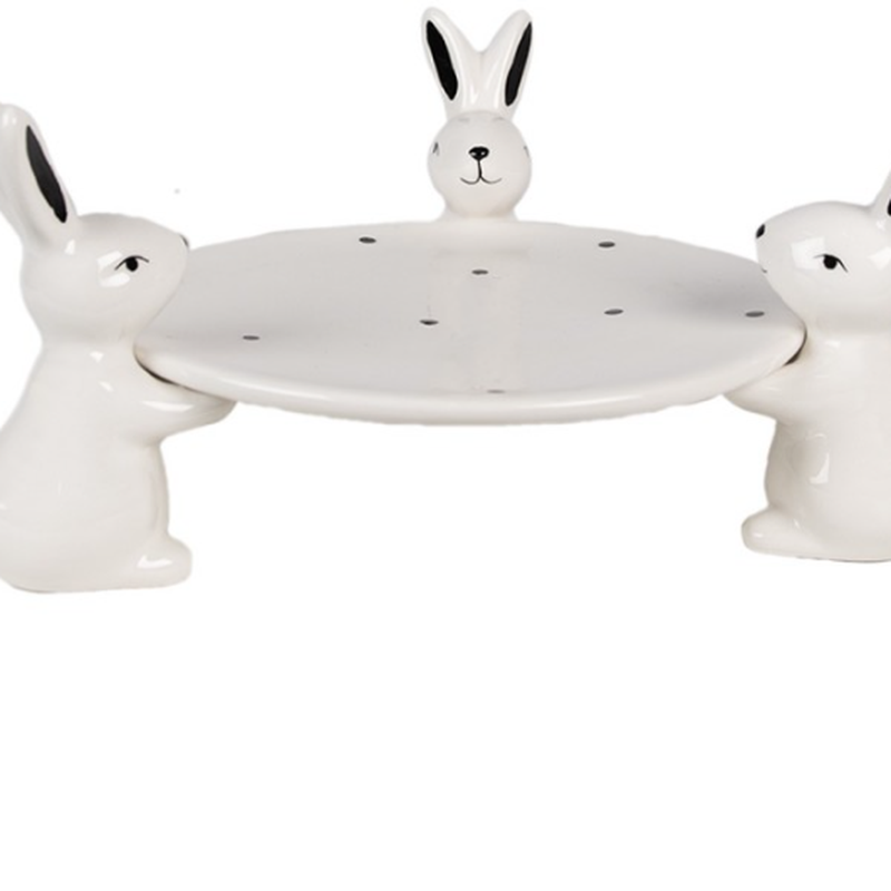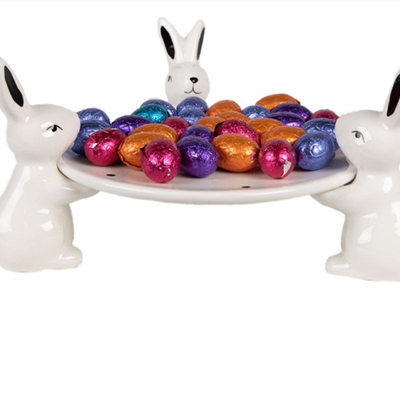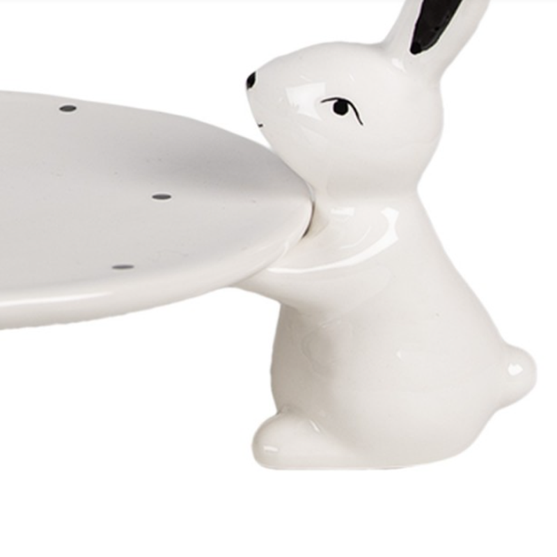 Scenografica e funzionale, la ciotola decorativa in ceramica Easter Table è pensata per diventare un elemento centrale della tavola pasquale. Il piatto superiore è sostenuto da tre conigli bianchi, disposti in modo simmetrico, che conferiscono al prodotto un forte impatto visivo pur mantenendo uno stile elegante e ordinato.