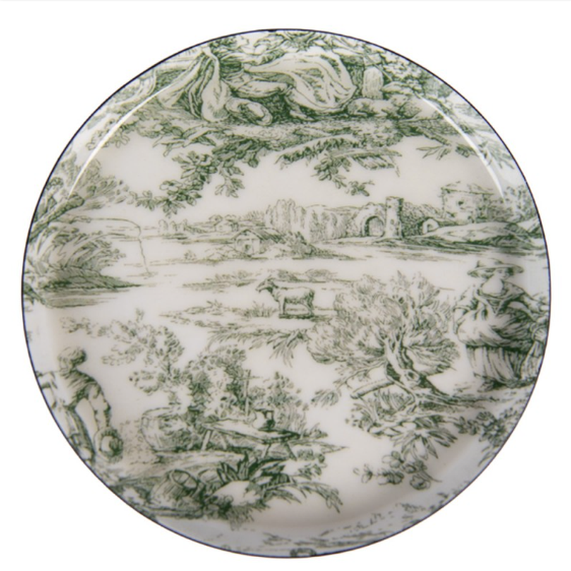 Eleganti e funzionali, il set di 6 sottobicchieri in ceramica Ø 11 cm è pensato per proteggere le superfici e valorizzare la tavola con una decorazione raffinata e senza tempo. Il motivo illustrato in tonalità verde, ispirato a paesaggi e scene naturali, conferisce carattere al set mantenendo un’estetica equilibrata e facilmente abbinabile.