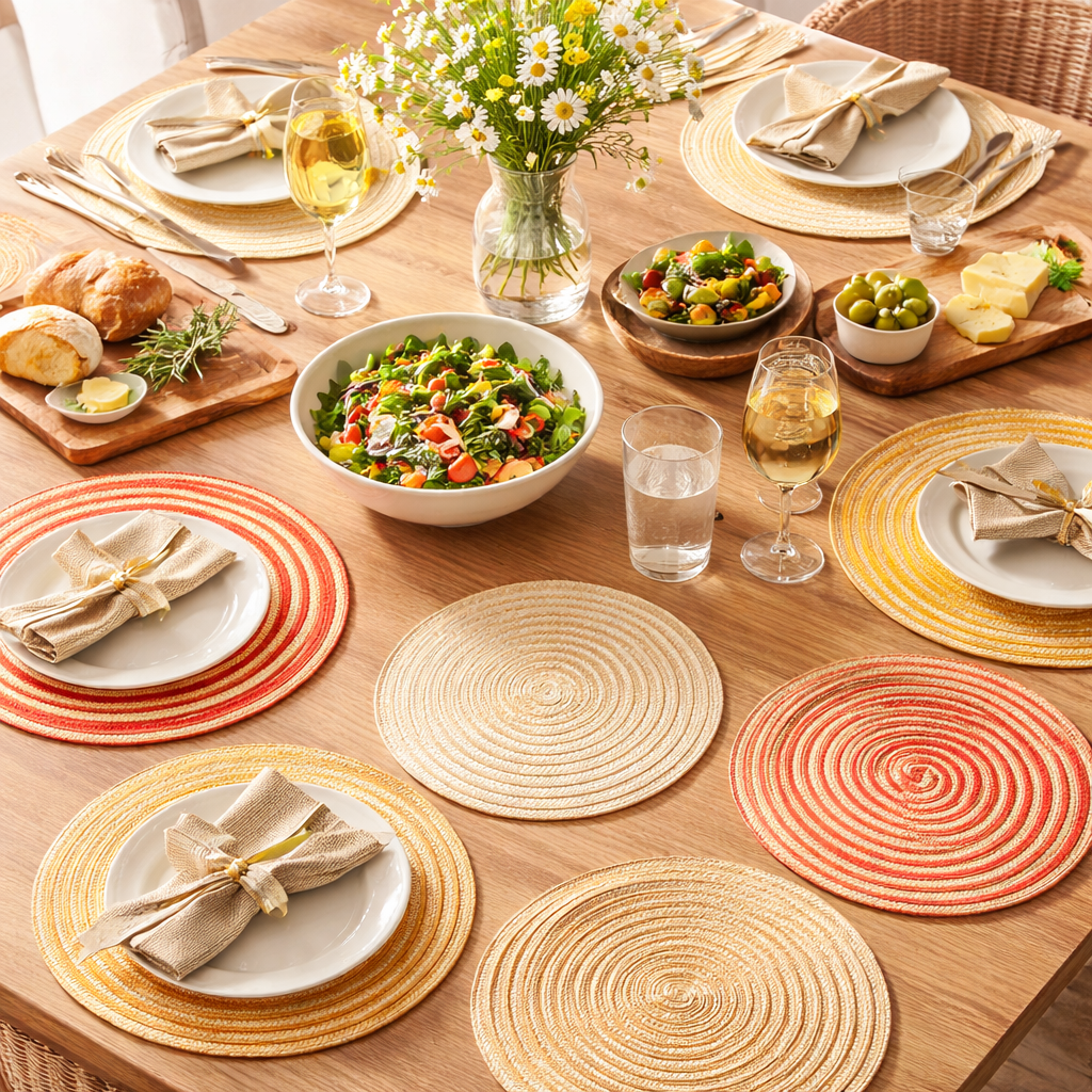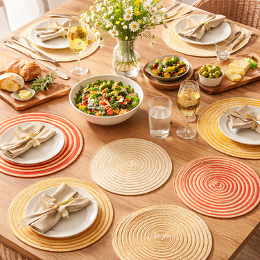 Set 6 Tovagliette Tonde con Trama Arancione Spiral Sunset – Villa D’Este