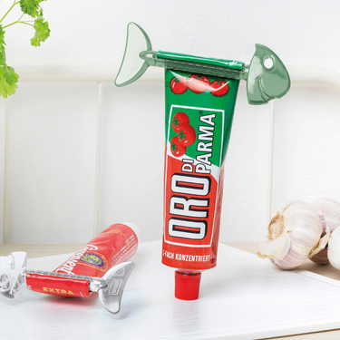 Chiudi Pacco Spremitubo Forma di Pesce Colore Bianco - ROLLMOPS Koziol: se sei stanco di sprecare preziosi prodotti come maionese, dentifricio, gel per capelli, lozione per le mani, colla e chi più ne ha più ne metta, abbiamo la soluzione che fa per te. Grazie allo Spremi Tubi ROLLMOPS di Koziol, un accessorio versatile e divertente, che ti aiuterà ad ottenere fino all'ultima goccia da ogni tubetto senza sprecare il prodotto. Questo accessorio intelligente ti aiuta a non sprecare il prodotto e aggiunge praticità alla tua routine quotidiana. Il design accattivante a forma di pesce si inerisce perfettamente tra gli oggetti utili per la casa. Questo accessorio è compatibile con una vasta gamma di tubetti, basterà posizionare il tubetto all'interno dello spremi tubi e ruotare la maniglia e fare in modo che il prodotto contenuto possa uscire facilmente. L'ingegnoso meccanismo interno spingerà il prodotto verso l'alto, garantendo che tu possa sfruttarlo fino all'ultima goccia. Rendi la tua routine quotidiana più efficiente e divertente.