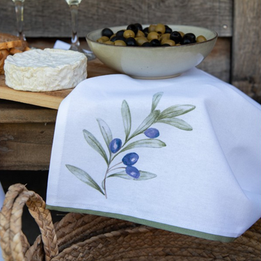 Strofinaccio da Cucina in Cotone Bianco con Motivo Rami D'Ulivo - Olives