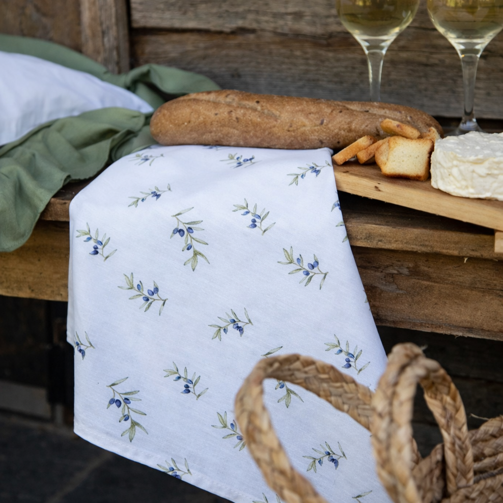 La tovaglia rettangolare da tavolo in cotone bianco rami d’ulivo 50x140 cm - Olives è la scelta perfetta per decorare la tavola con eleganza e semplicità. Realizzata in cotone di alta qualità, offre morbidezza al tatto e resistenza all’uso quotidiano. Il design con delicati rami d’ulivo verdi e frutti blu su sfondo bianco si abbina facilmente a diversi stili di arredamento, dal rustico al moderno. Le dimensioni di 50x140 cm la rendono ideale per tavoli rettangolari di medie dimensioni, perfetta sia per pranzi informali che per occasioni speciali. Facile da lavare e stirare, mantiene colori brillanti nel tempo. Un accessorio essenziale per chi cerca una tovaglia da tavolo pratica e decorativa.