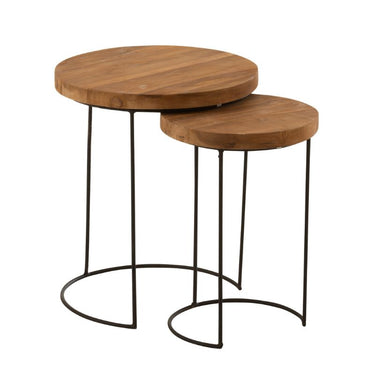 Set 2 Tavolini in Legno Teak Colore Naturale e Struttura in Metallo