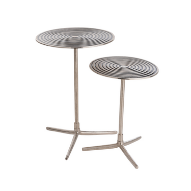 Set 2 Tavolini Moderni in Alluminio Piano Scalanature a Cerchio Colore Argento