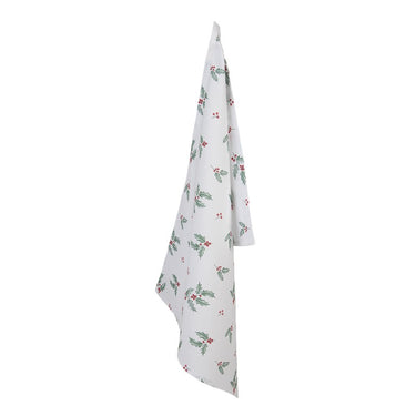 Strofinaccio da Cucina Natalizio Bianco con Foglie di Agrifoglio - Holly
