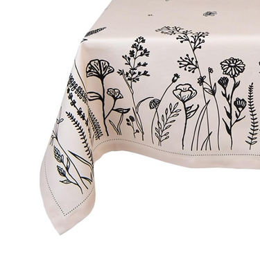 Tovaglia Rettangolare 12 Posti in Cotone Colore Beige con Fantasia Floreale - Botanic