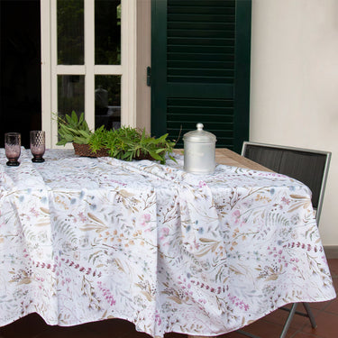 Tovaglia 6 Posti Rettangolare in Puro Cotone Fantasia Floreale 140x180 cm - Flores