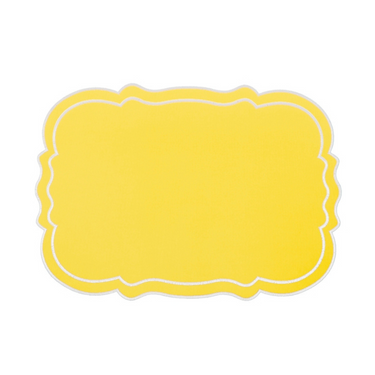 Questa tovaglietta in cotone colore giallo con bordi ricamati bianco si fa notare per la sua forma sagomata, una scelta di design che porta movimento e personalità alla tua mise en place.