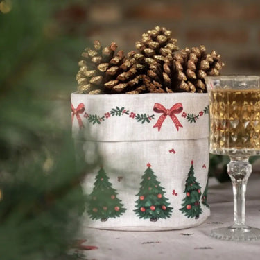 Completa la tua tavola di Natale con questo elegante cestino portapane in cotone beige a tema Natalizio , perfettamente coordinato al resto della collezione con alberi e ghirlande.