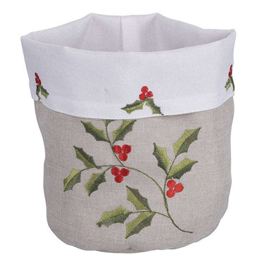 Cestino Portapane Natalizio con Decorazione Ricamata Agrifoglio Rosso Colore Grigio - Villa D' Este