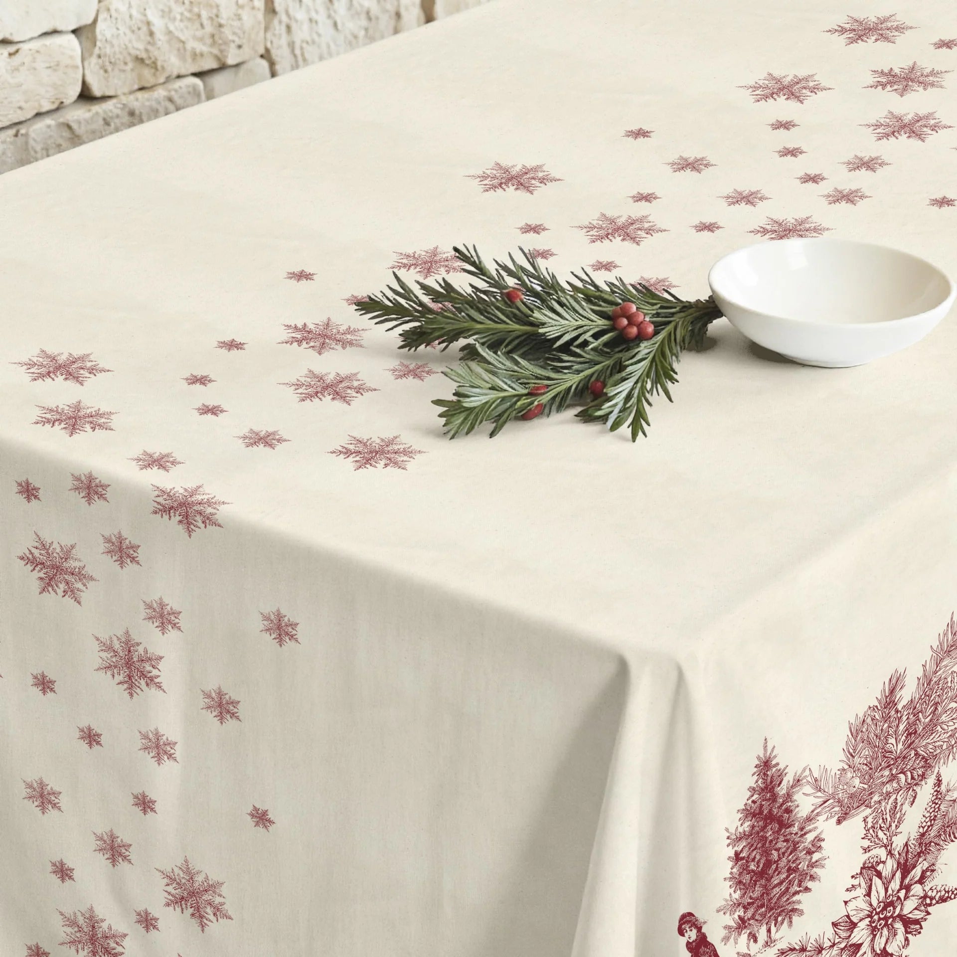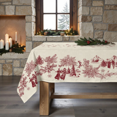 Tovaglia di Natale con Disegno Paesaggio Invernare Rosso 155X250 cm - Toile