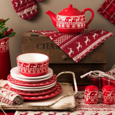 Crea una calda atmosfera festiva con la tovaglia "Norwegian Christmas". Realizzata in cotone, è caratterizzata da un tradizionale design con cervi sui toni del rosso e del beige. Perfetta per decorare e proteggere la tavola durante le feste, misura 130x180 cm ed è comodamente lavabile in lavatrice per una massima praticità.