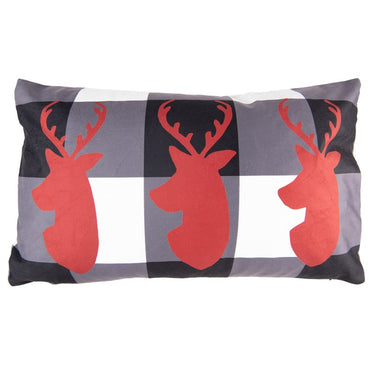 Federa Cuscino Rettangolare Natalizia Fantasia a Scacchi - Cervo Rosso