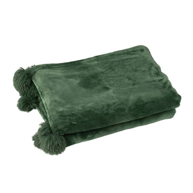 Plaid in Poliestere Colore Verde Scuro con Pompon 170x130 cm