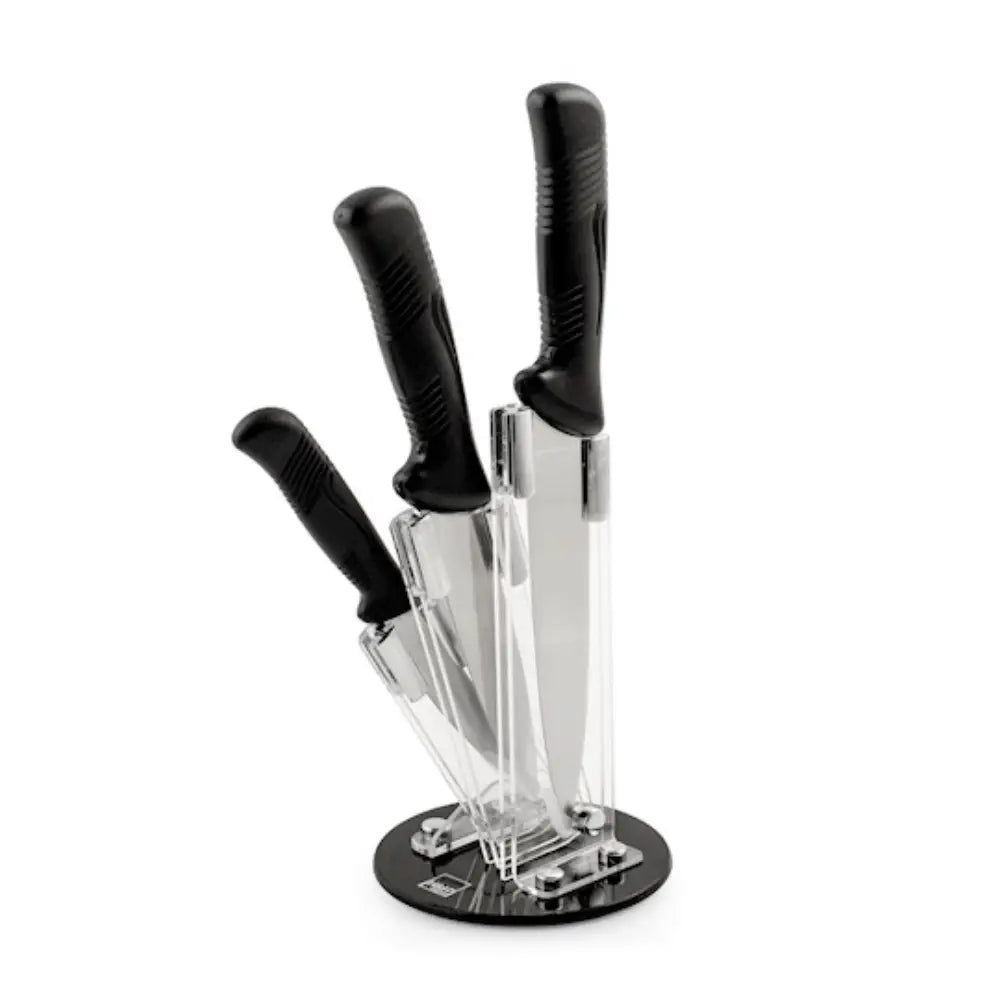 Ceppo in Acrilico Trasparente con Set 3 Coltelli in Acciaio Inox - H&H