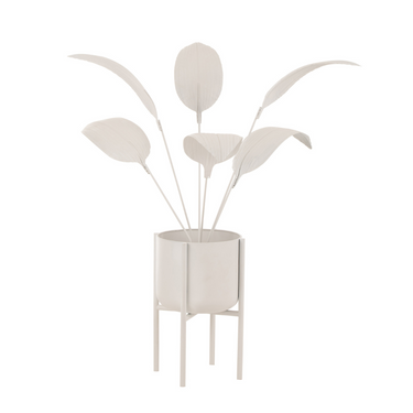 Pianta Ornamentale in Metallo con Vaso Colore Bianco h 101,5 Large: questa pianta decorativa rappresenta un elegante complemento d’arredo che si adatta in qualsiasi stanza della tua casa. Le sue foglie e il vaso su piedistallo rendono questa pianta ornamentale un oggetto esclusivo e sofisticato. Realizzata in metallo e caratterizzata da una palette di tonalità bianche, questo oggetto è perfetto per abbellire gli spazi interni ed esterni della tua casa senza richiedere particolare attenzione. Si rivela una scelta pratica e raffinata per impreziosire al massimo l'ambiente con originalità.