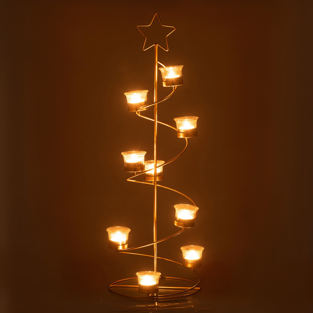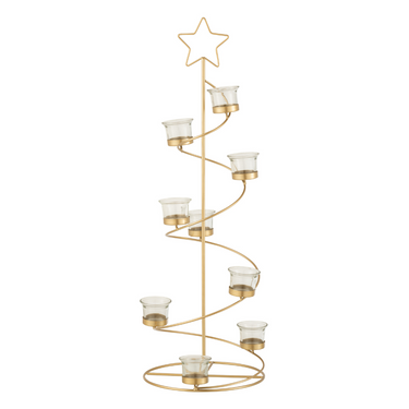 Albero Natalizio Porta T-light in Metallo e Vetro Colore Oro con Stella
