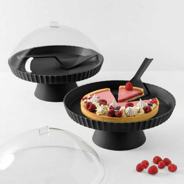 L'Alzata per dolce e salato colore nero Agorà di Blim è l'accessorio ideale per presentare in modo elegante e pratico i tuoi dolci e piatti salati. Realizzata in polipropilene, di alta qualità, questa alzata è robusta e stabile, perfetta per qualsiasi occasione speciale. La calotta trasparente protegge i tuoi cibi, mantenendoli freschi e al riparo da polvere e insetti, mentre la paletta inclusa facilita il servizio. Con un design moderno ed elegante, l'alzata Agorà è ideale per servire torte, pasticcini, antipasti e molto altro. Disegnata e prodotta da Blim, un marchio rinomato per la qualità e l'innovazione dei suoi prodotti, questa alzata è facile da pulire e resistente agli urti e durevole nel tempo. La combinazione di funzionalità e stile rende l'Alzata con Paletta e Calotta un elemento indispensabile per ogni amante della cucina. Ideale per tue presentazioni culinarie, garantisce al contempo la massima freschezza e protezione per i tuoi piatti.