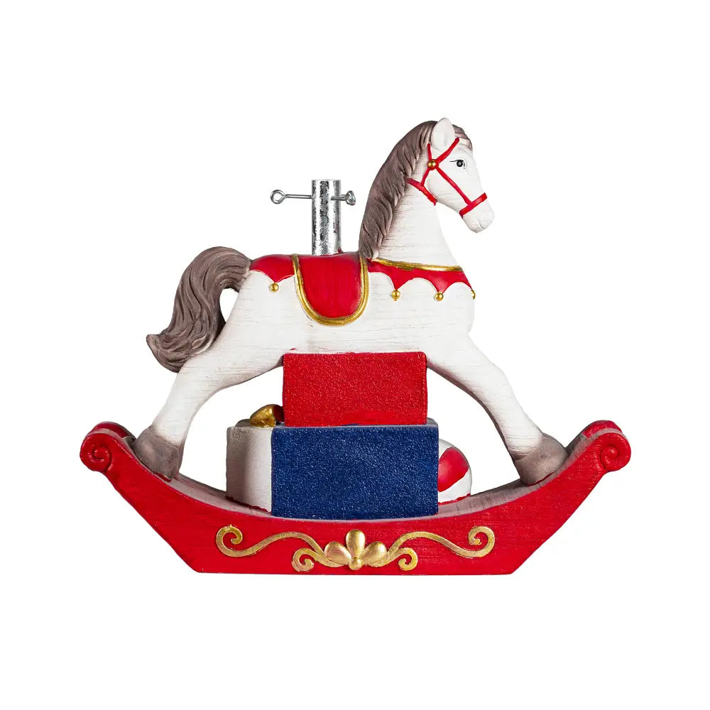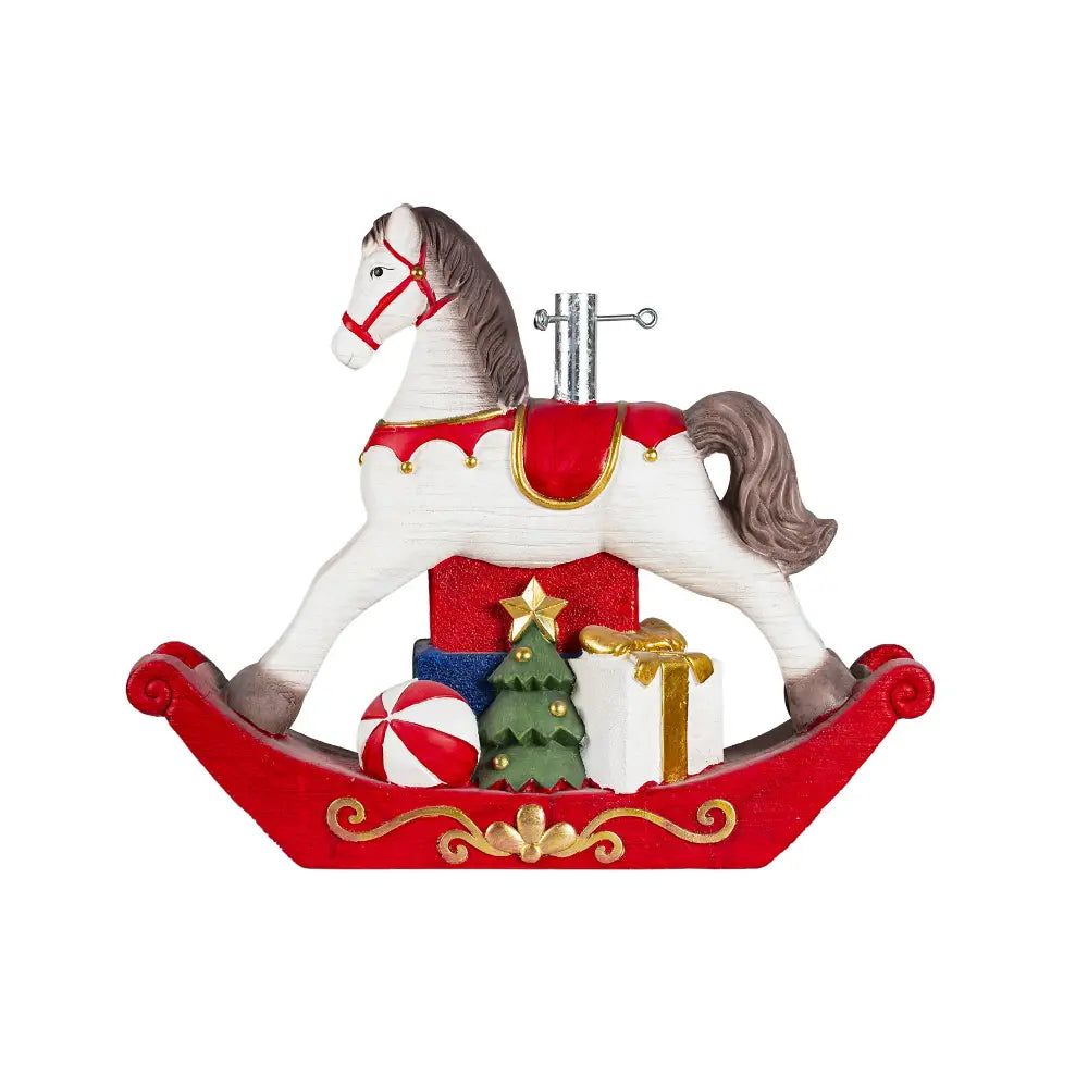 Base Albero Cavallo a Dondolo in Ceramica Bianco e Rosso