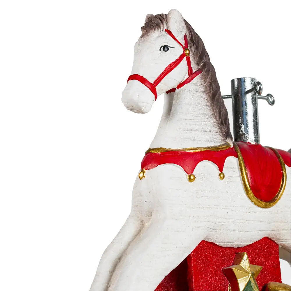 Questa base è resistente e stabile, garantendo un supporto per il tuo albero di Natale fino a 210 cm di altezza. I dettagli come i pacchi regalo e l'albero decorativo alla base del cavallo completano il design rendendolo una decorazione unica e raffinata.