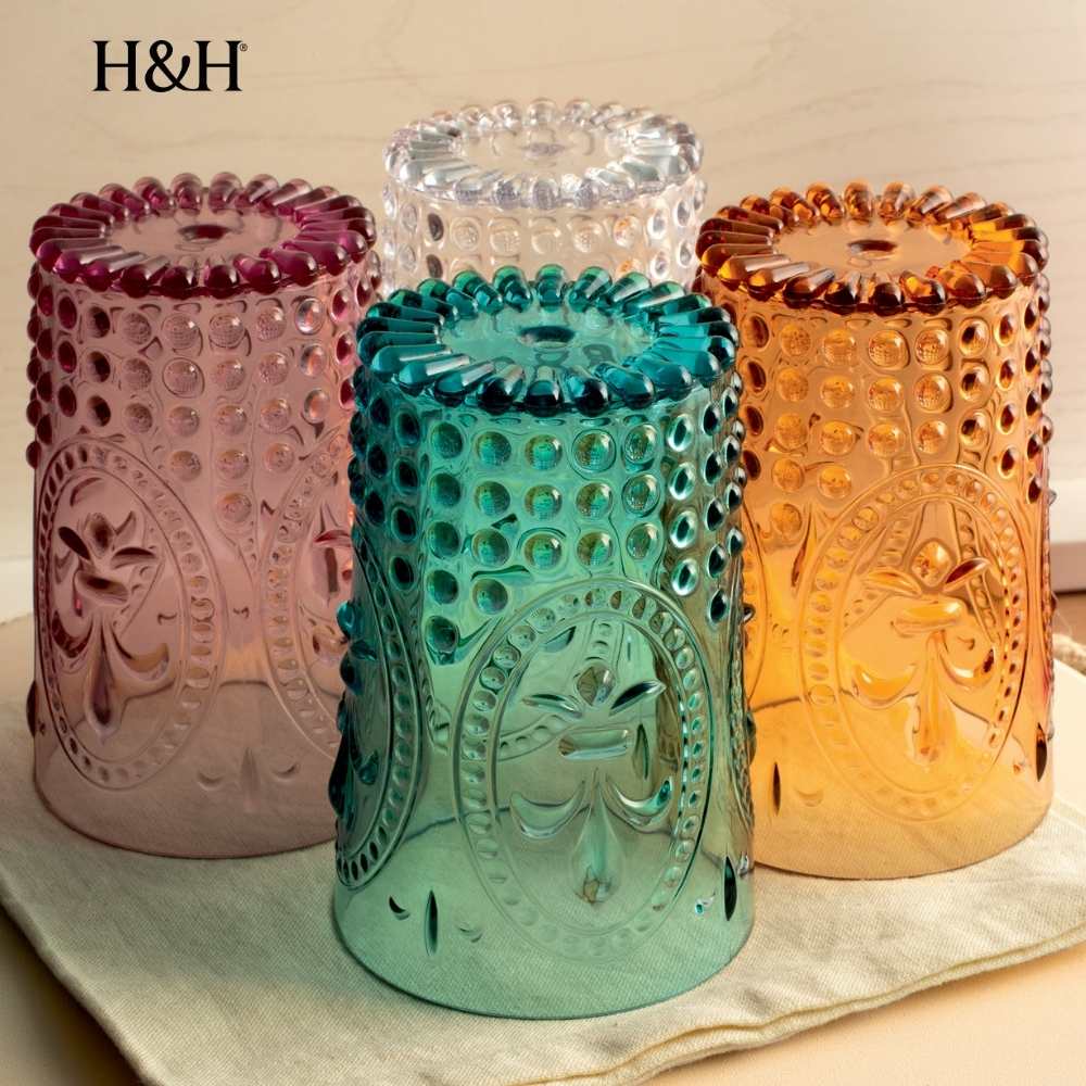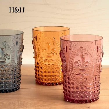 Bicchieri Infrangibili 45cl Set 6 Colori Assortiti con Decoro a Rilievo