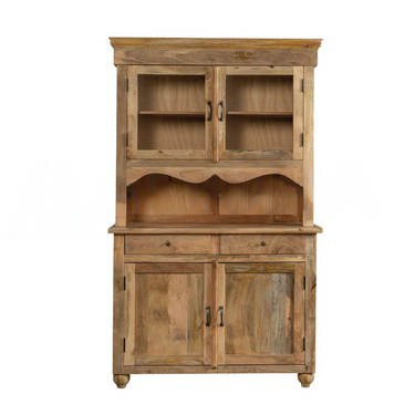 Credenza Vetrina Doppio Corpo in Legno Massello di Mango Colore Naturale