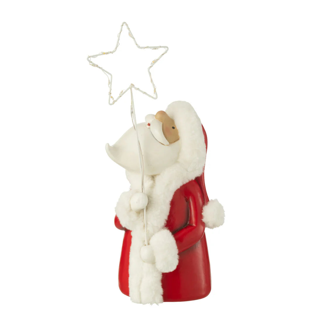 Decorazione Natalizia Luminosa Babbo Natale con Stella Led: illumina la tua casa con l’incantevole decorazione natalizia: un Babbo Natale che stringe una scintillante stella LED. Questa decorazione di Natale creerà un'atmosfera festosa e accogliente nella tua casa. Il design di Babbo Natale nel suo vestito rosso con la pelliccia bianca rende questa decorazione natalizia un classico per qualsiasi tipo di arredamento. Ideale per decorare il tavolino del salotto, il camino, il mobile della cucina o qualsiasi altro angolo della casa, questa statuetta natalizia ti accompagnerà durante tutto il periodo delle feste.