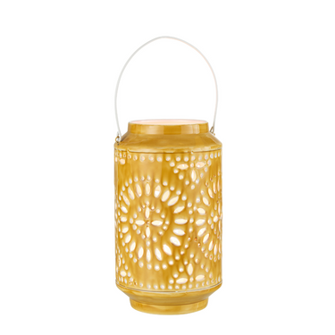 Lanterna Alta Forata in Ferro Colore Ocra: realizzata con cura e attenzione ai dettagli, questa lanterna presenta un motivo decorativo traforato che crea bellissimi giochi di luce quando viene accesa. Il suo materiale robusto in ferro garantisce una lunga durata nel tempo, mentre il colore ocra conferisce un fascino unico che si adatta perfettamente a qualsiasi arredamento. Ideale per creare un'atmosfera calda e accogliente nelle serate estive in giardino o sul balcone. Può essere appesa a un gancio o posizionata su una superficie piana per illuminare delicatamente lo spazio circostante. Grazie al suo design versatile, può essere utilizzata anche come elemento decorativo da interni, aggiungendo un tocco di originalità e personalità alla tua casa.