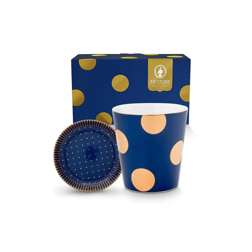 Mug 290 ml in Porcellana Blu e Oro con Piattino Dot Delight - Pip Studio