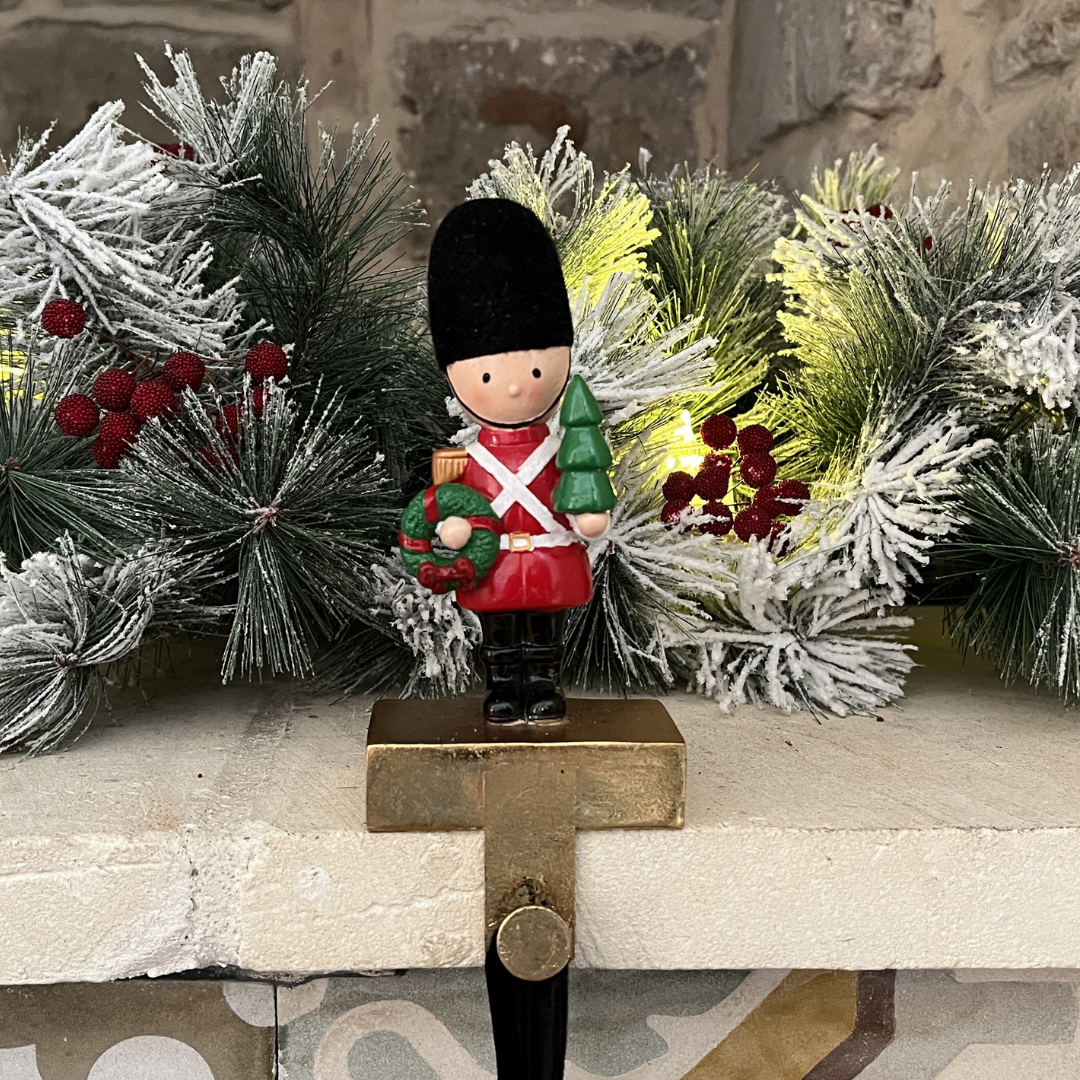 Senza camino? Nessun problema! Presentiamo il nostro porta calza da Befana, realizzato in resistente resina, che rappresenta un affascinante schiaccianoci circondato da una ghirlanda festiva e un albero di Natale. È la soluzione perfetta per appendere con comodità la tua calza della Befana su qualsiasi superficie. Questo accessorio combina funzionalità ed un design natalizio unico, offrendo una nota di tradizione e magia alla tua Epifania.