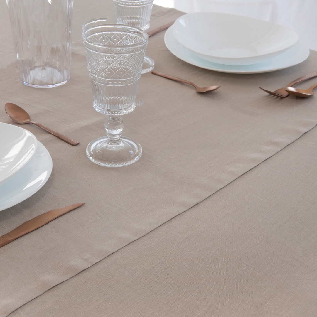 Runner Artigianale 100% Puro Lino 50x160 cm Colore Menta: questo raffinato accessorio realizzato in puro lino, si compone di un tessuto leggero e traspirante che si adatta perfettamente ad ogni stagione. Il colore beige dona freschezza ed eleganza, rendendo il runner un complemento ideale per qualsiasi stile di arredamento. Le cuciture precise e i bordi finemente rifiniti evidenziano la cura dei dettagli e l'attenzione nella manifattura artigianale del prodotto. Il runner in lino è progettato per essere versatile, perfetto per arricchire la tua tavola sia durante eventi formali che per l'uso quotidiano, perfetto per una tavola rettangolare o ovale.