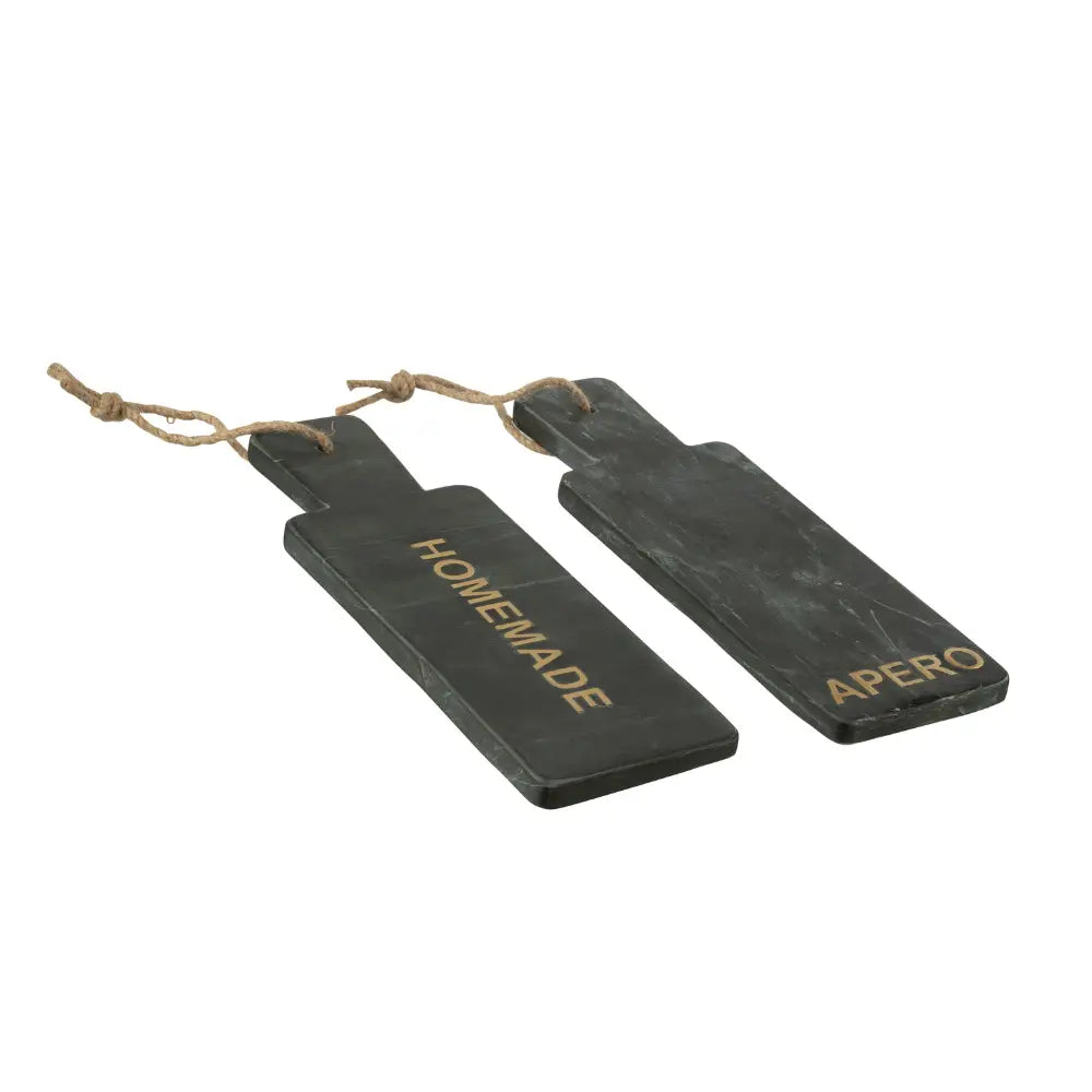 Set 2 Taglieri in Pietra Effetto Marmo Nero Scritte Oro Homemade e Apero