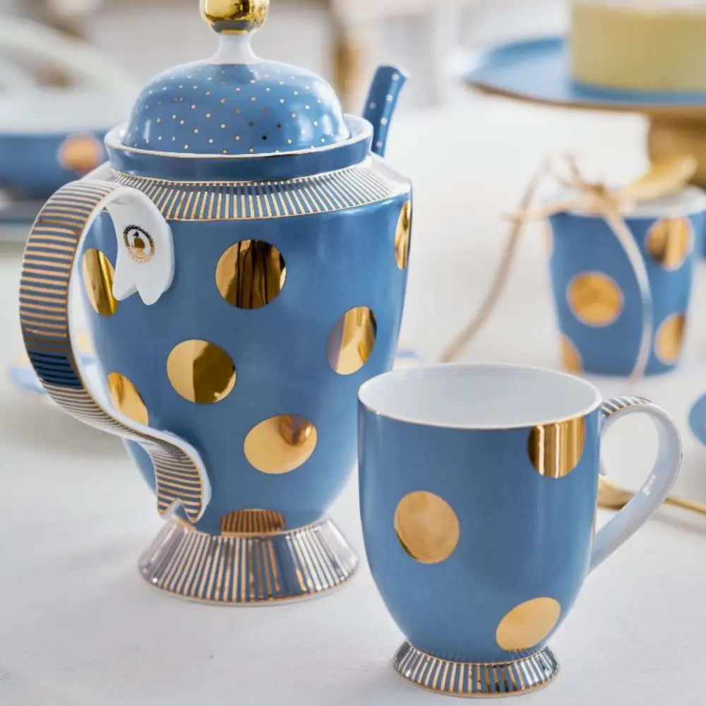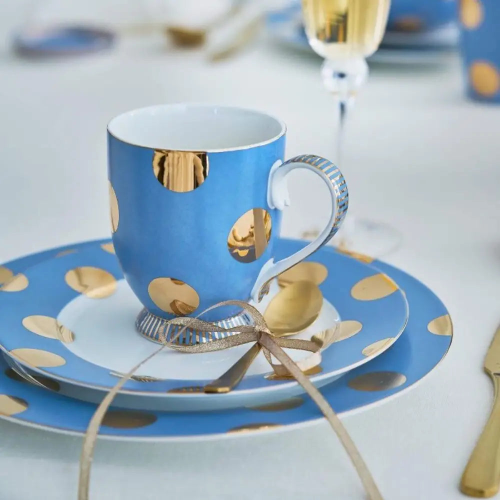 Set 2 Tazze 350 ml in Porcellana Pois Azzurro e Oro Dot Delight - Pip Studio