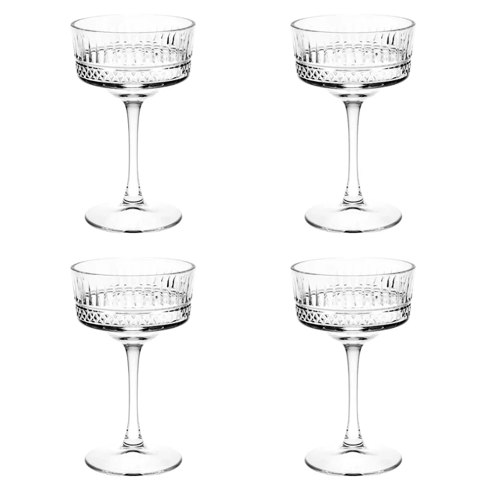 Set 4 Coppe Champagne in Vetro Trasparente Sagomato 26 cl – Elysia