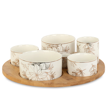 Vassoio Girevole per Aperitivo in Legno di Bambù 6 Ciotole in Ceramica