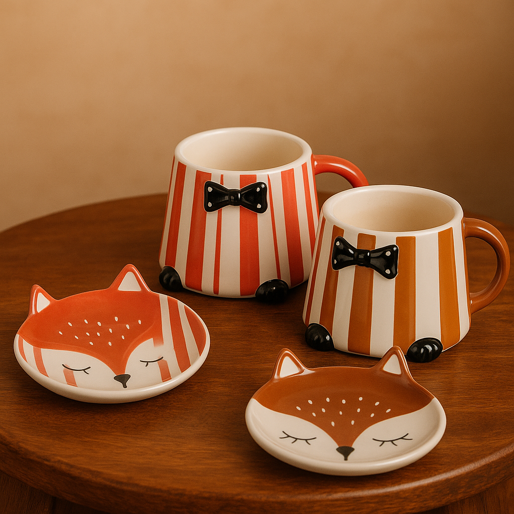 Tazza Mug Volpe in Ceramica con Piattino Colore Arancione - Couleurs D'Automne