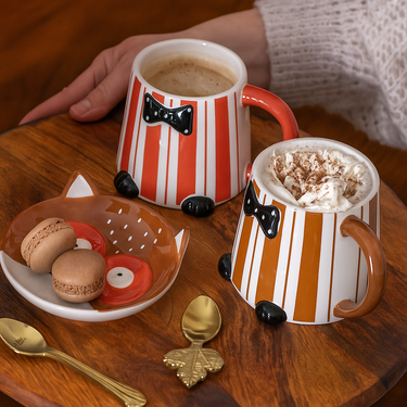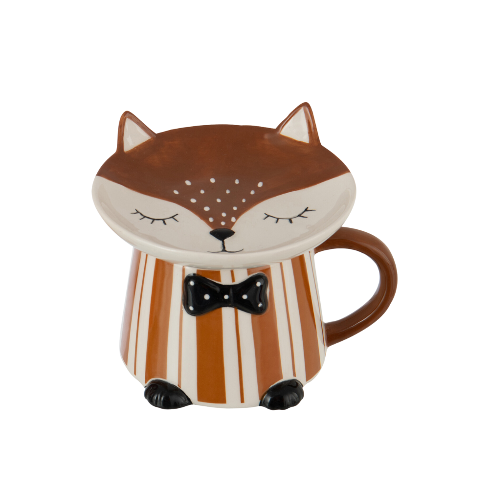 Tazza Mug Volpe in Ceramica con Piattino Colore Marrone - Couleurs D'Automne