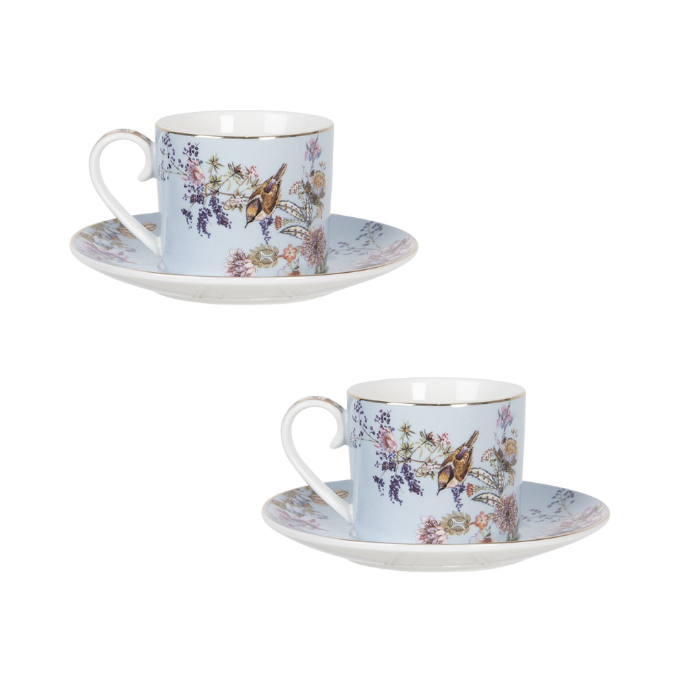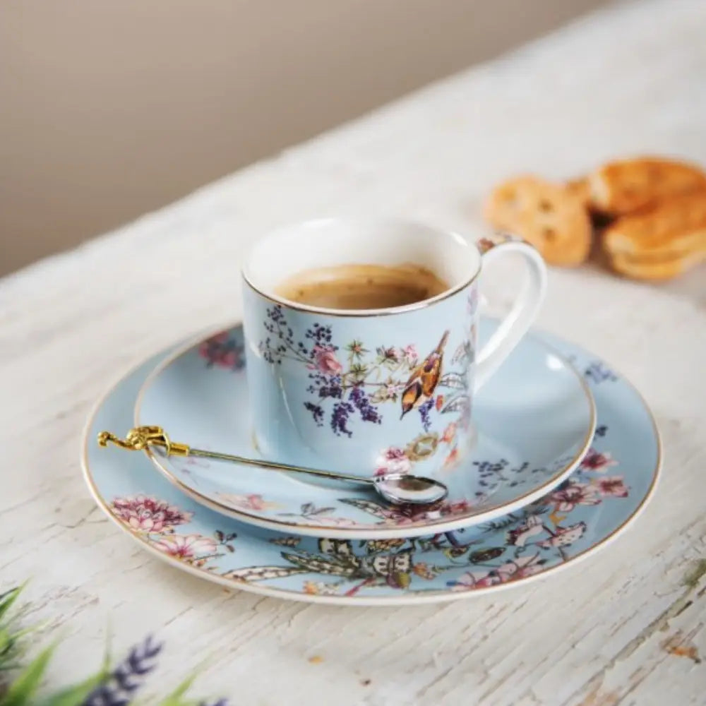 Set 2 Tazzine da Caffè con Piattino in Ceramica 220 ml Decorazione Floreale